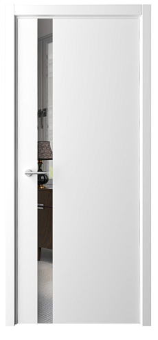 Дверь Геометрия-5 ширина 80 см Белый Эмаль Стекло белое кромка В цвет полотна