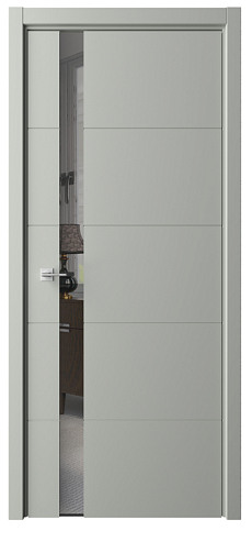 Дверь Геометрия-7 ширина 90 см Серый Эмаль Зеркало грей кромка В цвет полотна