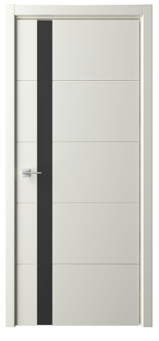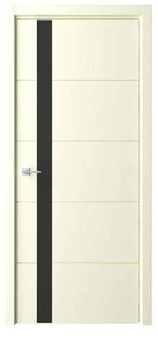 Дверь Геометрия-7 ширина 80 см Латте Эмаль Стекло черное кромка В цвет полотна