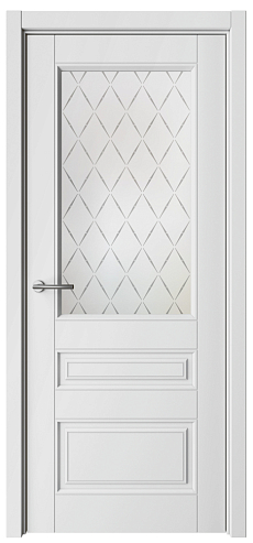 Дверь Классика-3 ширина 90 см Белый Эмаль Стекло мателюкс "Лорд матовое" кромка В цвет полотна